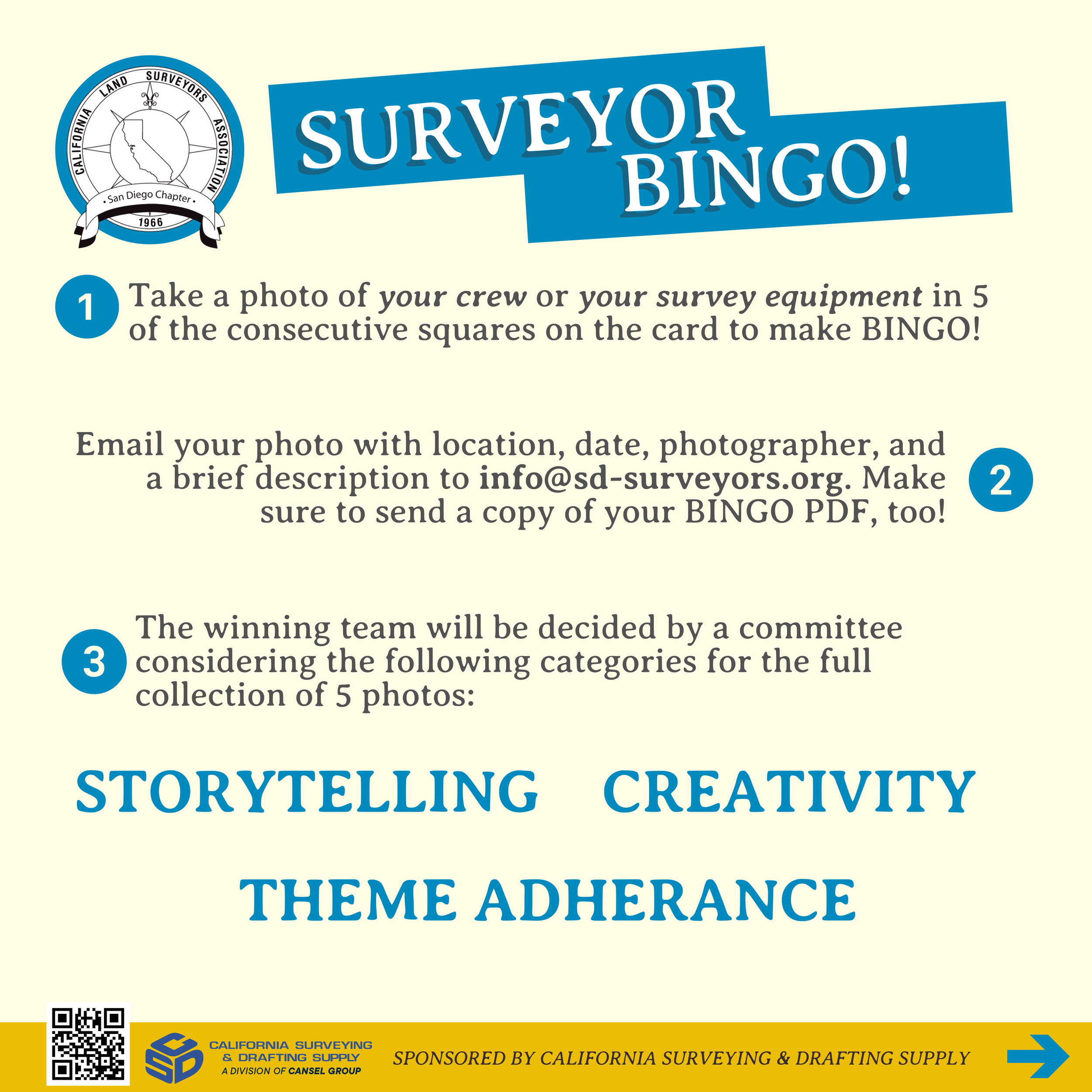 Be submitted by emailing the photos to info@sd-surveyors.org no later than 11:59 PM PST on February 28, 2026*